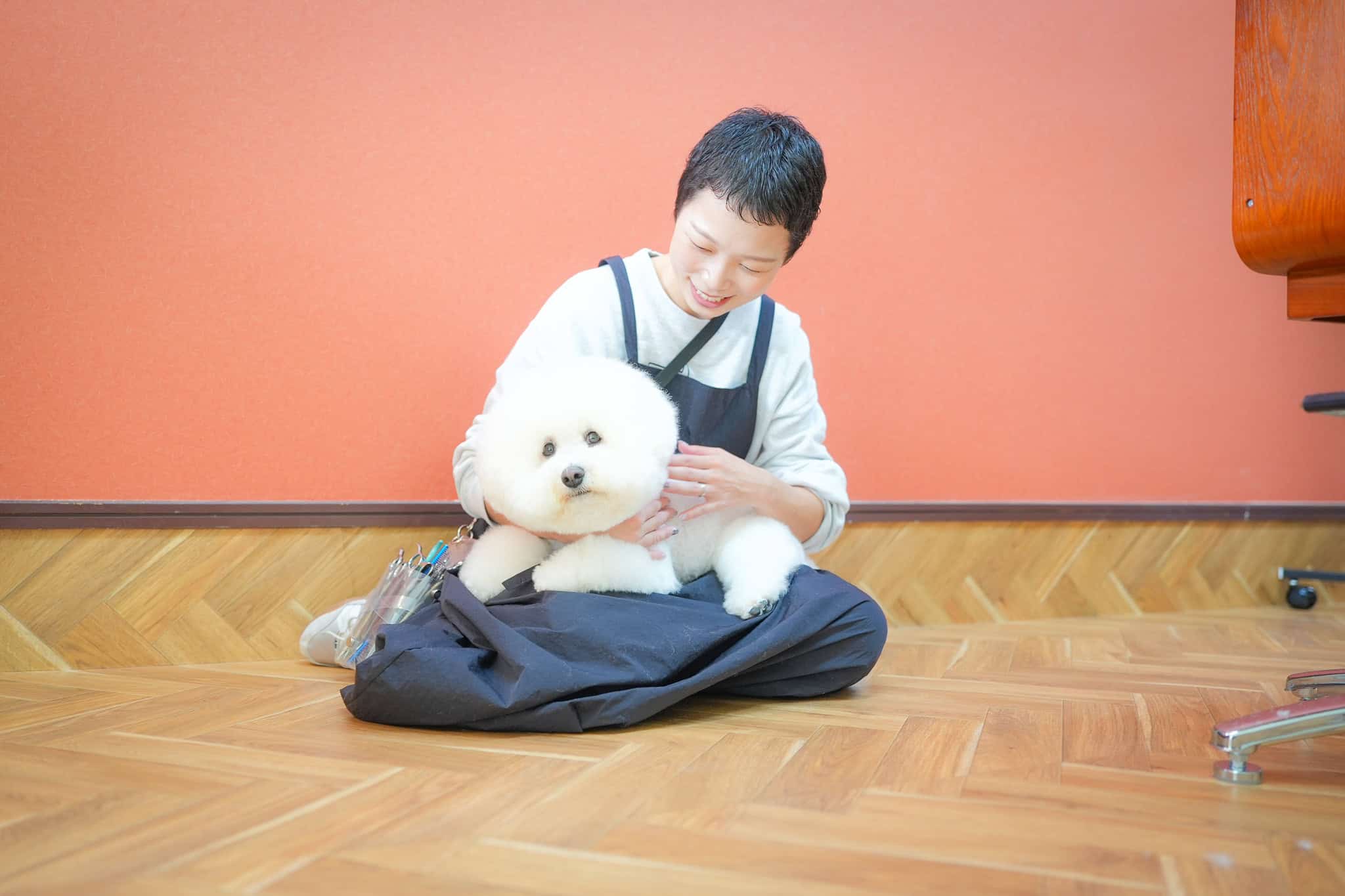 ご安心ください。トリミングサロンべこでは、初めてトリミングを受ける子犬(パピー)にもやさしく丁寧に対応しています。初回は慣らしを兼ねて、無理のない範囲での施術を行い、トリミングに対して良い印象を持ってもらえるよう心がけています。
